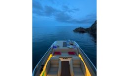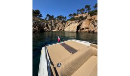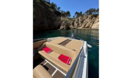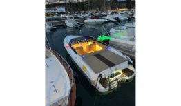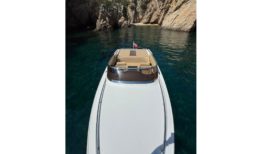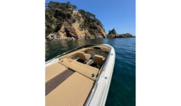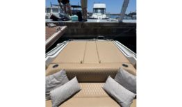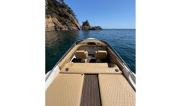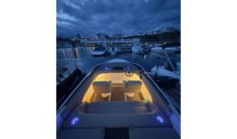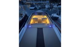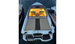 El interior ha sido completamente renovado con tapizado a medida de alta calidad, mientras que la iluminación de ambiente en laterales, sala de motor y subacuática añade un toque elegante y moderno. El solárium de popa, con paso central en teka sintética y suelo completo en el mismo material, junto con la escalera de baño ampliada en caoba, hacen de esta 607 un barco cómodo, funcional y muy atractivo para el disfrute de la navegación deportiva o familiar.