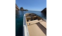 Con volante Isotta modelo Azimut nuevo, reposavasos iluminados y placa central para ampliar el solárium, cada detalle ha sido cuidado para ofrecer la mejor experiencia a bordo. Además, al ser menor de 8 metros, está exenta de impuesto de matriculación, lo que supone un ahorro adicional para el comprador.